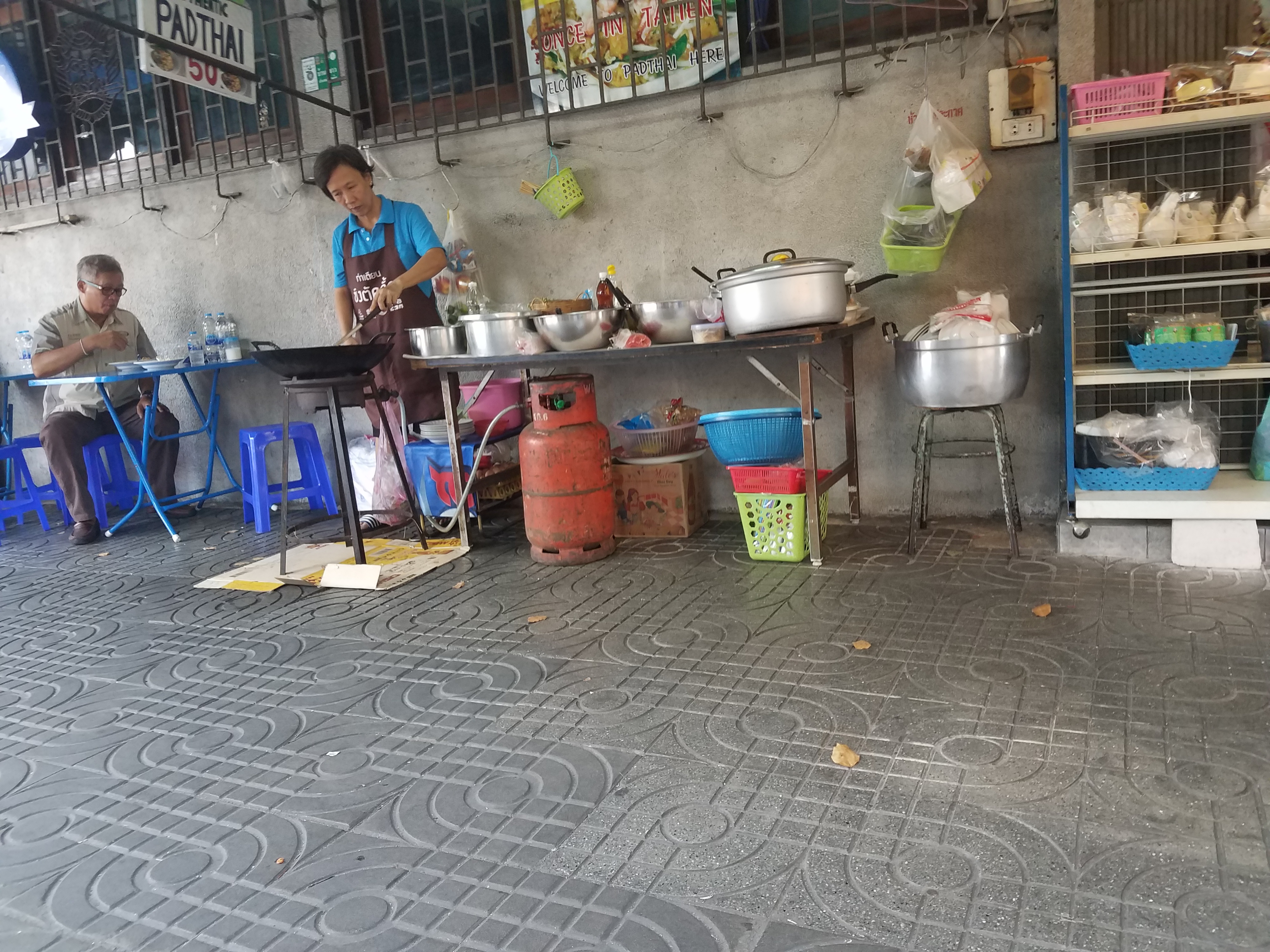 The boat dropped us off at a place that was different from where we were picked up. Fueled by hunger and curiosity, we set out to find some delicious local food. If you haven’t heard, it’s hot in Thailand. So immediately a smoothie shop caught our eye. Still ravenous after being literally and figuratively taken for a ride, we stopped in front of a lady cooking noodles in a giant stir fry pan on the sidewalk. We sat down at a plastic table hardly big enough to fit our knees under and had delicious (and very spicy) noodles.