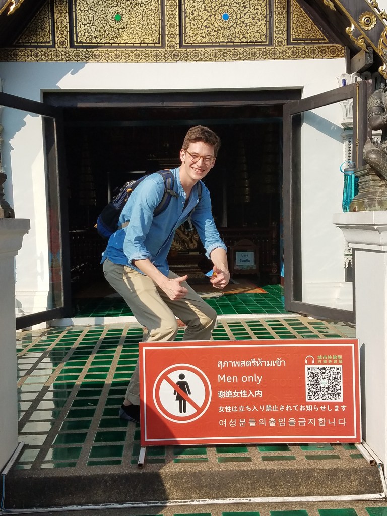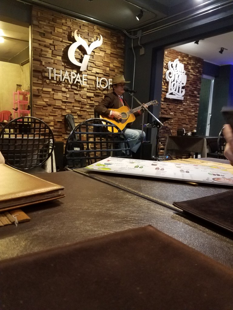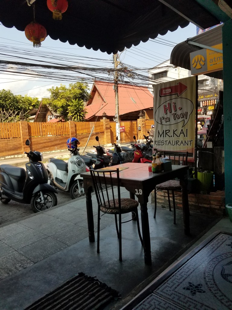 There were temples of all shapes, sizes, colors, material, age, and number of monks. Some were massive, ancient, and made of mossy stone. Some made of beautifully carved wood. Some (unfortunately) didn’t allow women. All within close walking proximity. For lunch we ate ate Tony’s, which surprisingly, was not a pizza place. Restaurants, cafes, and bars were a haven throughout our travels. For one, we ate all the time. The food was amazing. Also we are youngsters who don’t know how to survive without the internet. Restaurants broke up the day and gave us a chance to plan our next move or brag to people back home about being in Thailand.