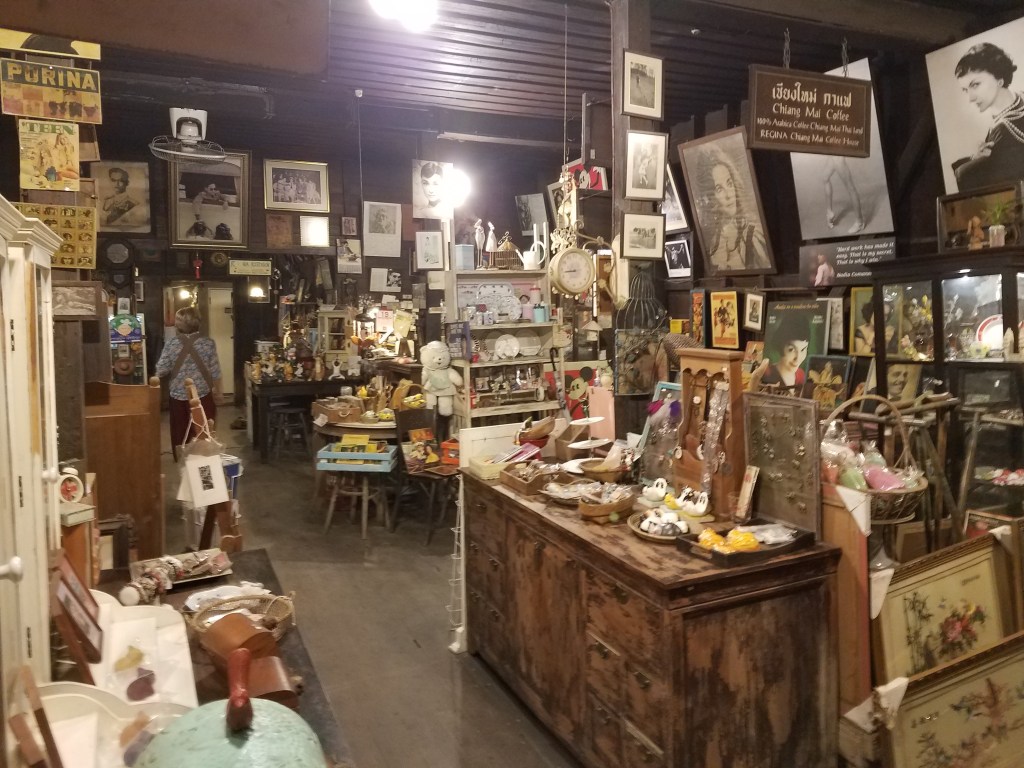 Finally we returned to the hotel, where we booked more flights and hostels. We did this as we traveled, which is infinitely more stressful than doing it before the trip. However, it is also more exciting. But mostly stressful. After a few hours of pulling our hair out trying to translate Burmese websites, we finally had a plan and went to dinner. The place we found on Google Maps was boarded up when we got there. So we found a place nearby with a tiny sign out front suggesting it might be a restaurant. When we walked through the door, we realized we were mistaken. It appeared to be a Thai souvenir shop, that also had knockoff American memorabilia? And there were cats everywhere. They appeared to have no target market or even a unifying theme. We were greeted by a sweet old lady who spoke little English. We asked if they served food, to which she replied, “Yes.”