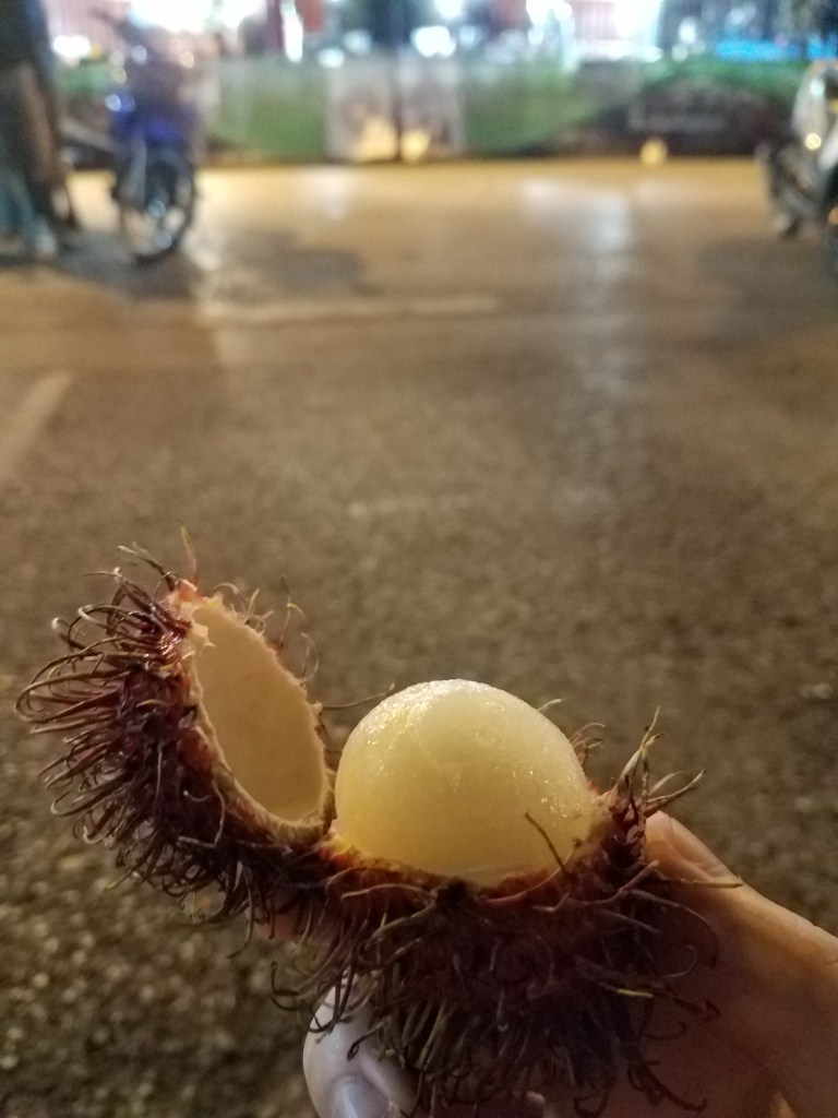 We eventually left and crossed the bridge back to the main part of town. The sun had set and the night market had risen. The streets were filled with tents and bustling with activity. We bought fruit and sushi from vendors we walked by. All delicious. The fruit in that part of the world is so ripe, juicy, and sweet it ruined fruit back home. We kept walking until we found a bar to sit down at. There was a man playing blues guitar in the back and we sat at the table closest to him. I was for some reason hell-bent on ordering a mojito in every city I visited. I’d like to think I was the first person to ever ask for a mojito in many of the bars we went to. This led to a lot of shitty mojitos.