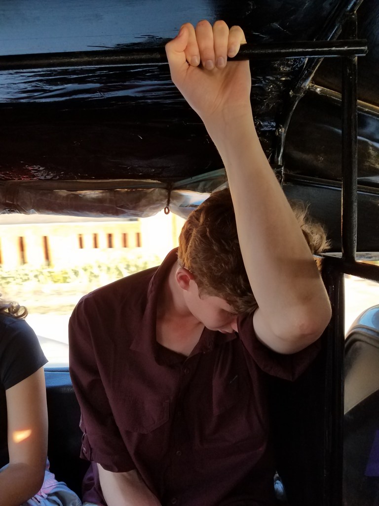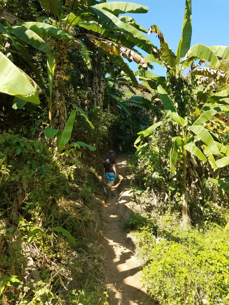 Our next adventure was a rain forest hike. We stopped for lunch at the trail head and they made us fried rice in a wooden thatched-roof hut. The hike itself was breathtaking. Most of it was along a river that we crossed several times by balancing on fallen logs. Rain forests are completely different from any forest in the US. The trees are so tall you have to crane your neck to see the top. The wood on the trees have a different texture. The leaves on plants are as big as a car windshield. There’s an abundance of moss and vines hanging off of every tree. The river carved a path so that the forest wasn’t too dense around us and there was plenty of space to take in the views.