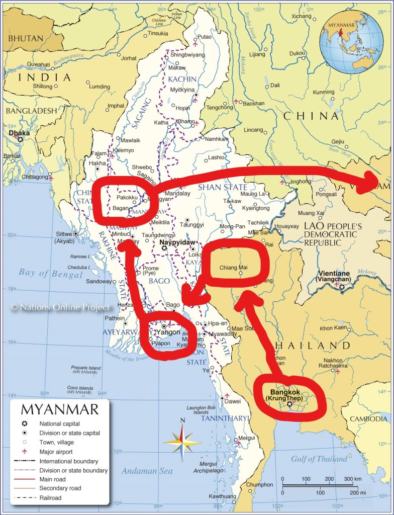 Despite the last 36 hours being a nightmare, this day turned out great. Many of the temples we could climb to the top of for a better view. Some had big interiors to explore. It was fascinating to think what the ancient empire that built Bagan was like. Along the way, we attracted a lot of attention from locals. Like, more than usual up to that point. People would open-mouth stare at us, take pictures of us, and with us. We stopped for lots of pictures. They must have thought we were in a boy band or were college basketball players or something. It was bizarre, I’ve never felt that much like a celebrity before. There were other tourists there, but most were old couples and guys that looked like they just spent a week at a music festival. To end the day, we watched the sunset from on top of a temple. Then I got some much needed rest.