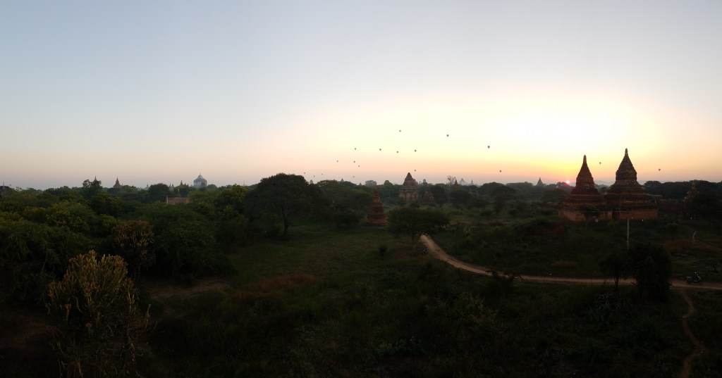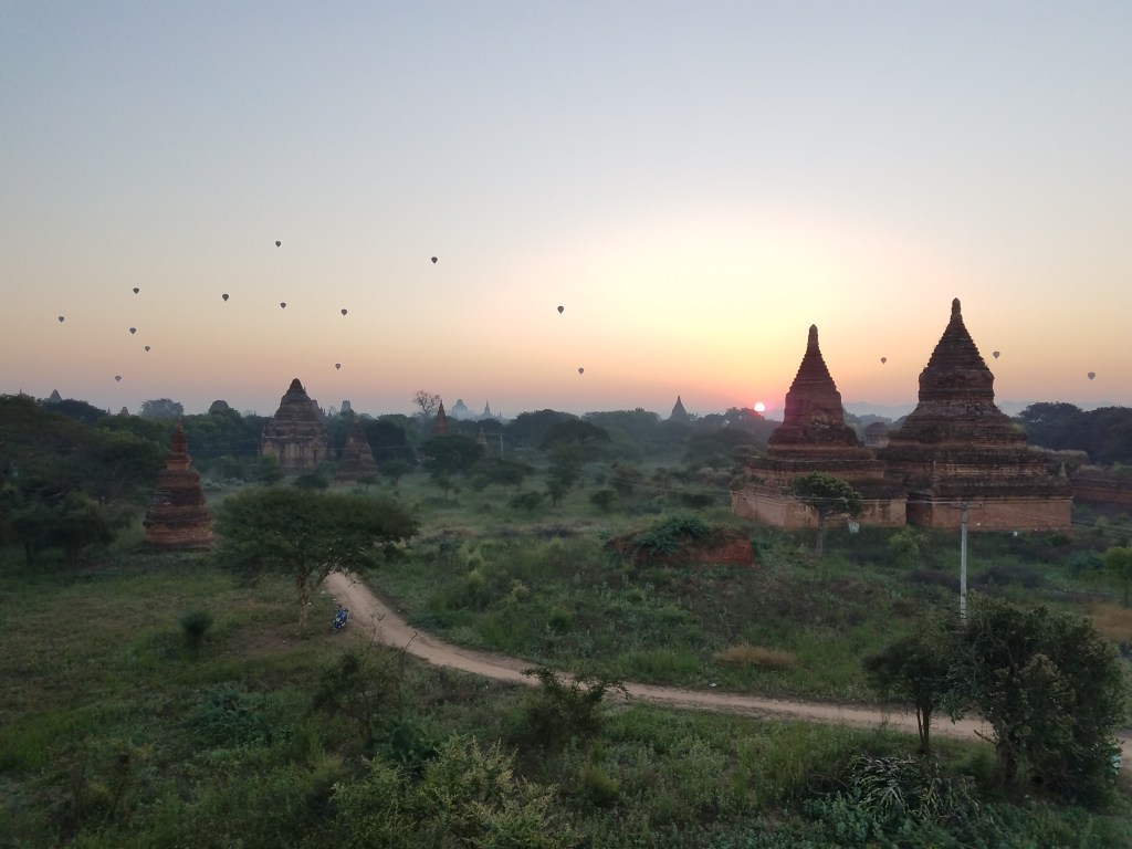 I apparently I only have the attention span to make one of these posts every few months. However this was a pretty memorable trip, so I’m not worried about forgetting it. I left off last post with us boarding an overnight bus in Burma. This was not a glamorous bus. No beds, just sleep in your seat. The road to Bagan was mostly dirt, making it a bumpy ride. I’ll spare you the details, but that night ended up being the worst food poisoning I’ve ever had. Jackson got it too. We traded off turns in the small bus bathroom the entire night. You probably don’t remember from the last post, but we accidentally short-changed our impromptu tour guide from the temple in Yangon. At one point during our rocky bus ride, I was waiting patiently outside the bathroom for Jackson when he stumbled out, ghost-pale, dripping sweat, and said, “THAT OLD MAN PUT A CURSE ON US.” He was referring to our spiritual tour guide who may or may not have had magical powers. Always tip your tour guides.