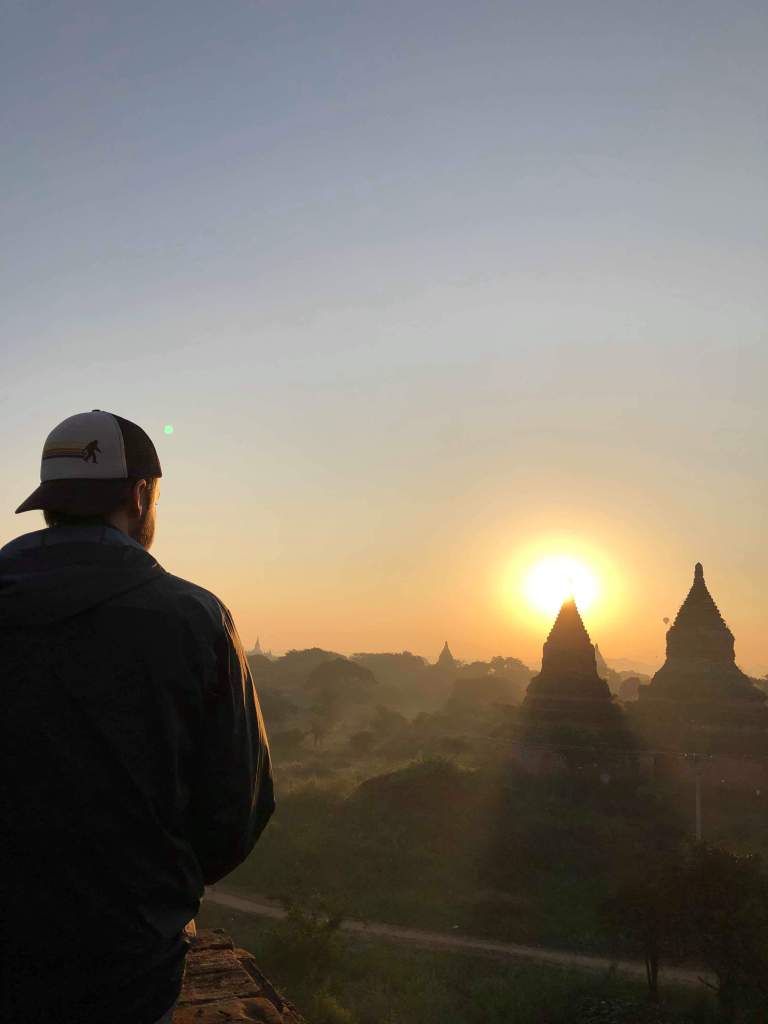 The next morning, we set out early to catch the sunrise. A local helped us find a good spot to watch from on top of a temple. The sunrise was almost indescribable. It was the most beautiful sunrise I’ve ever seen. The valley had a gray-dawn light humming in the mist. The air was brisk, but only enough to keep you awake. When the sun began to cross the horizon, the silhouettes of hundreds of ancient temples began to show their reddish hue. The trees cast long shadows across open meadows. The entire valley took on a warm ambiance of wonder. As the sun grew, the sky became dotted with hot air balloons. Dozens floated into our field of view and completed the perfect scene. Jackson and Kyle left, along with the others who had come to share the view, but I stayed for a while longer. Something about that place and that moment resonated with me and I couldn’t bring myself to leave.