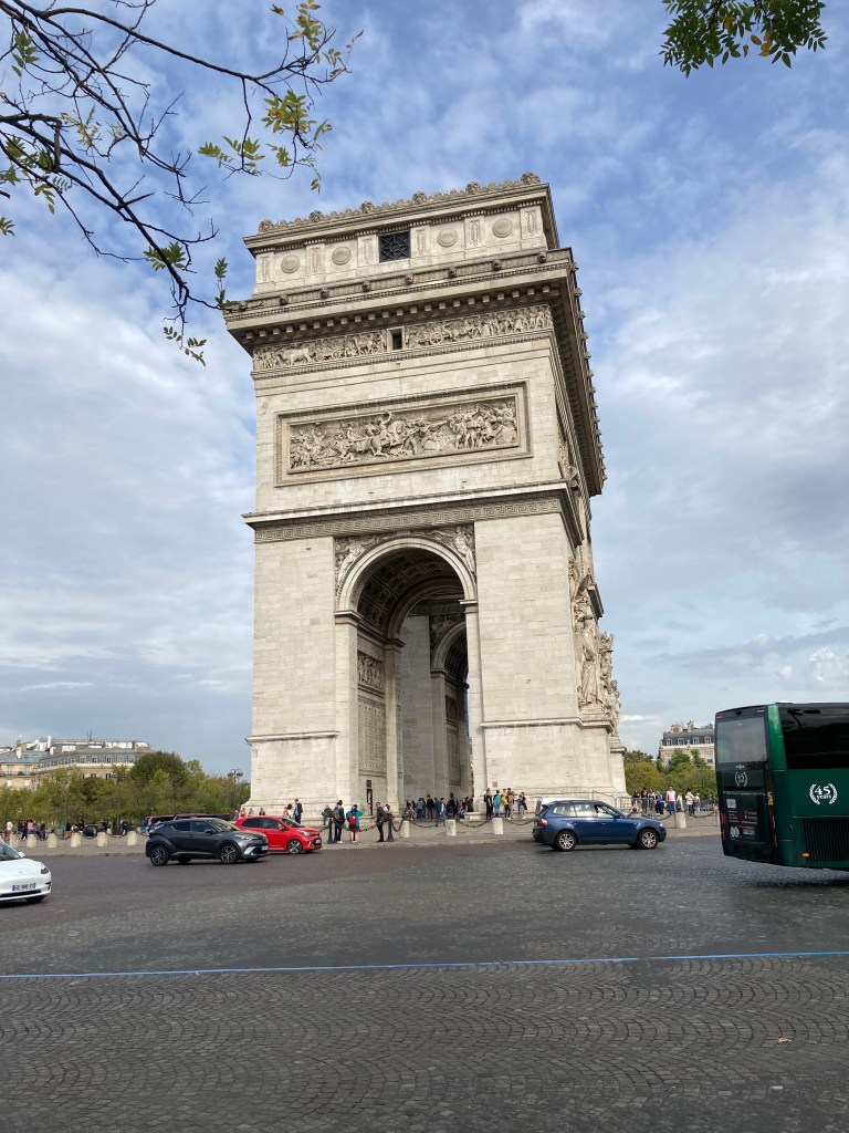 It was a beautiful October day. We took a cab to the Eifel Tower, but walked the rest of the day. We walked from the end of the park laid out in front of the Tower, under the Tower, over the river, up the many steps to the Trocadéro, through the shaded streets to the massive roundabout encircling the Arc de Triumph. In fact, it is the largest roundabout in the world. There are no lanes and certainly no crosswalks. There is an underground pathway that leads to the enormous arch. It is also much larger in person than I imagined.