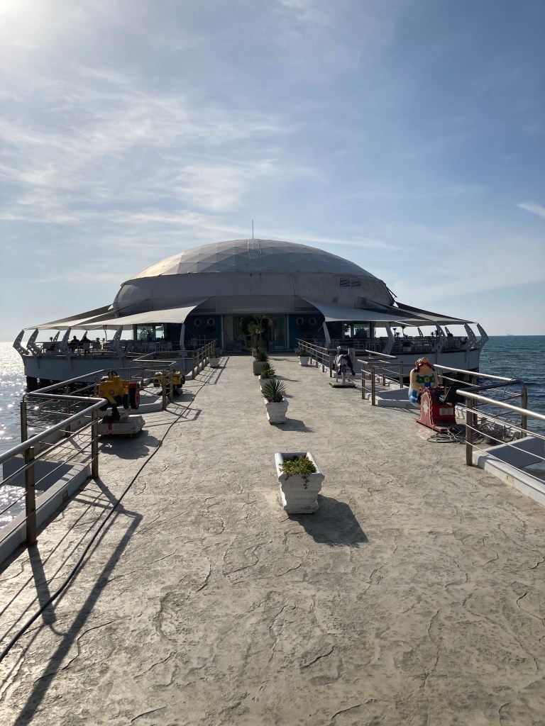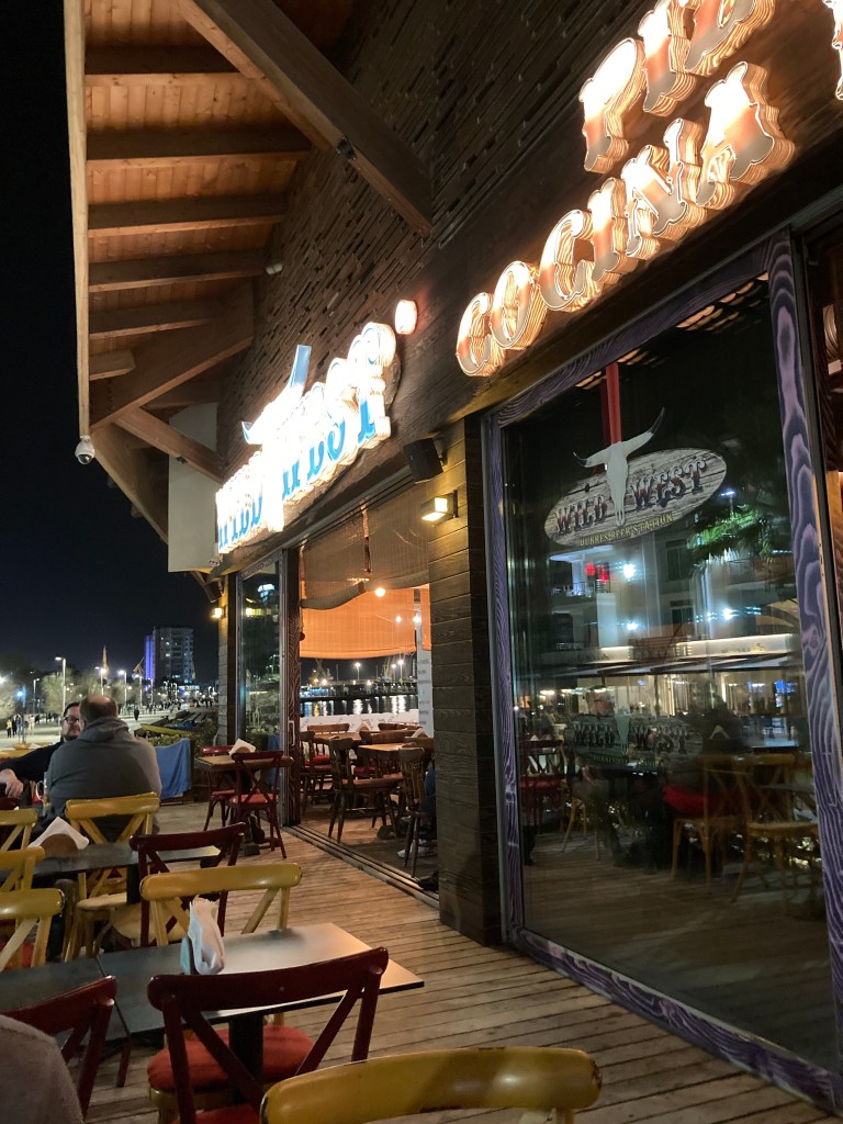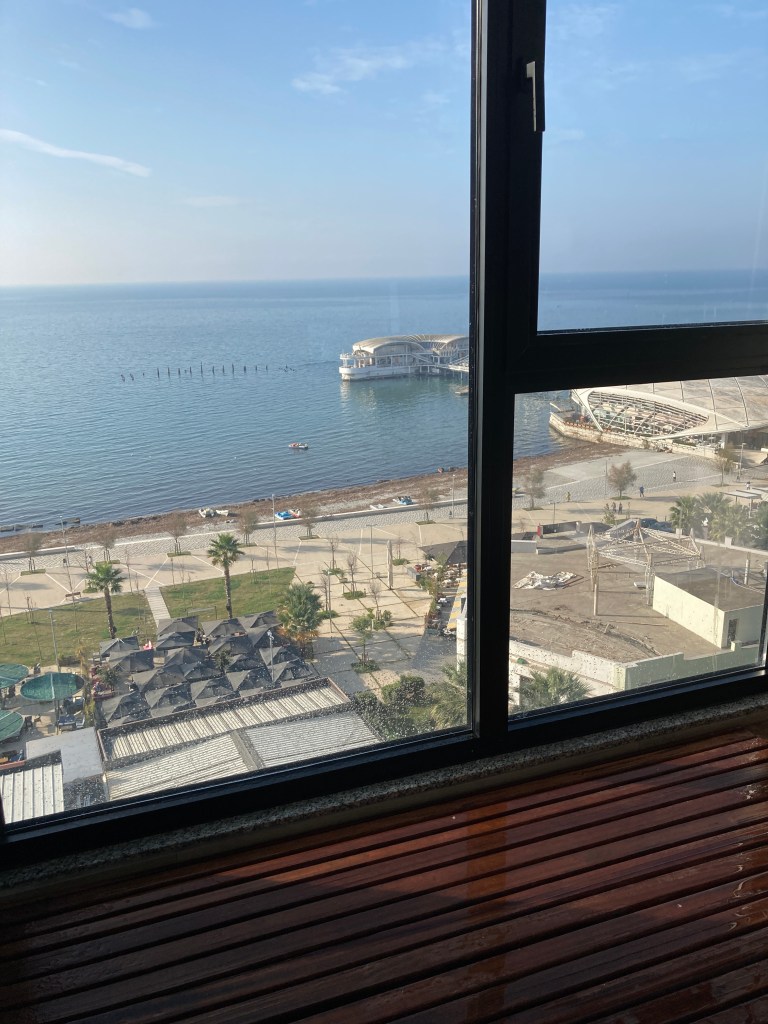 After we settled in, we set out to find a bite to eat. The town was strange. We were in a great area, just a block away from the ocean. There was a park and palm trees and a seaside walkway. There were basketball courts and a small soccer field. We had a variety of restaurants and stores. But everything felt… off. Like it was almost a resort town, but not quite. They tried to dress it up as best they could. Stray dogs roamed around, but seemed friendly. The seemingly nicest part of the city was ghostly and empty. Bright lights and signs were plastered on cracked and decaying walls. Some of it, maybe a lot of it, was the architecture. When you’re spoiled enough to see cities in Spain and Italy, the Soviet-Mediterranean architecture inspired dull and sleepy thoughts.