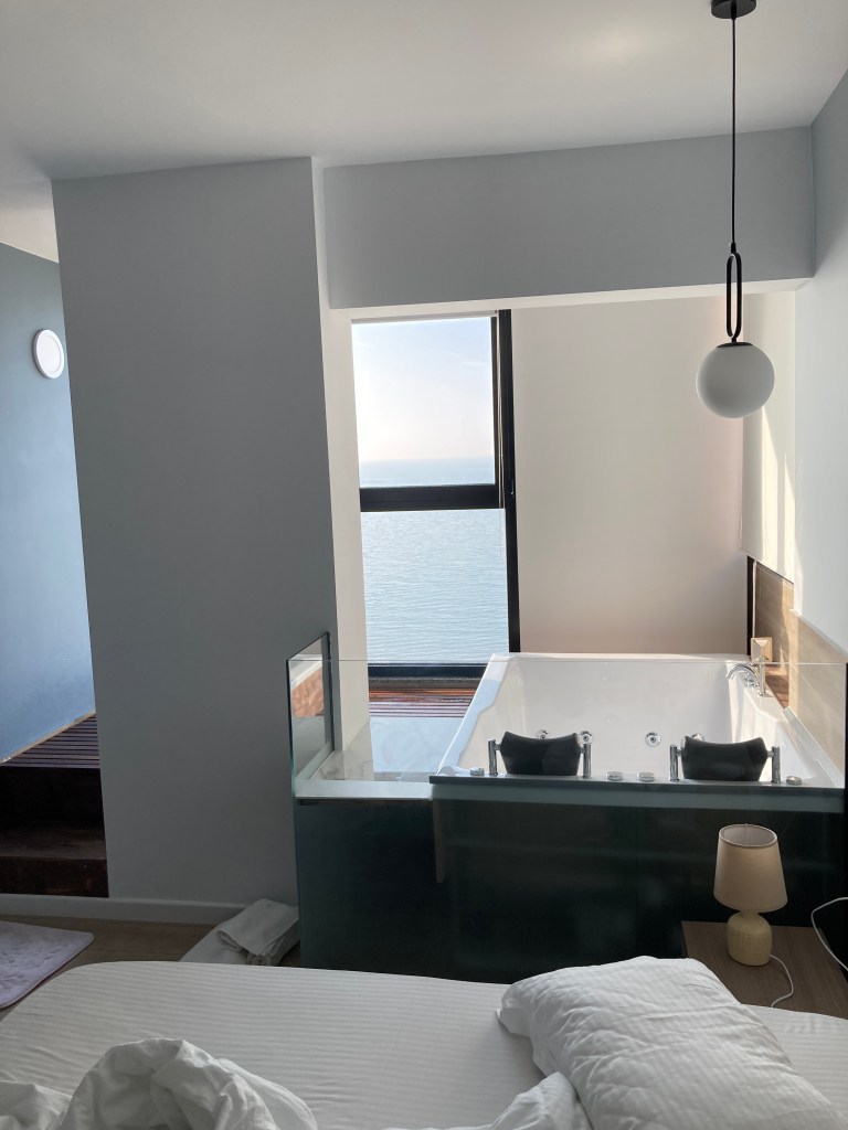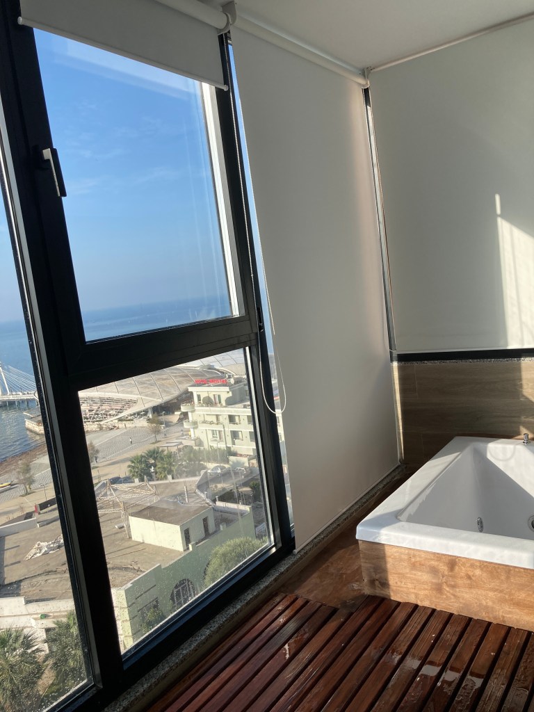 We ended up parking a half mile away from the actual building. The airbnb was on the top floor of a fifteen floor tower. Like most other buildings, made of ole reliable: concrete. Despite the exterior, the interior was a luxurious penthouse. Three bedrooms, large living room and kitchen, balcony over looking the ocean. The master bedroom had the shower on an elevated surface two steps above the bed with floor to ceiling windows facing the Mediterranean. I was concerned that someone in Italy with a telescope might see me naked.