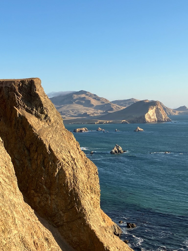 The bus had left, but one man remained to show us the way. We hiked up a steep ridge to behold the views from above. This gave us views of the surrounding sea cliffs and rock spires piercing the ocean surface. The ridge we walked along was high. Can’t say for sure how high, but it would take at least ten seconds for something to hit the water. For a while we walked along this ridge until sunset. The rock formations over the water were stunning. Like something out of Star Wars. I couldn’t believe -and still can’t- that it was the same country that shared the lush Amazon rainforest. The speechless feeling I attempted to describe to hook my readers was what I felt in Paracas National Park.