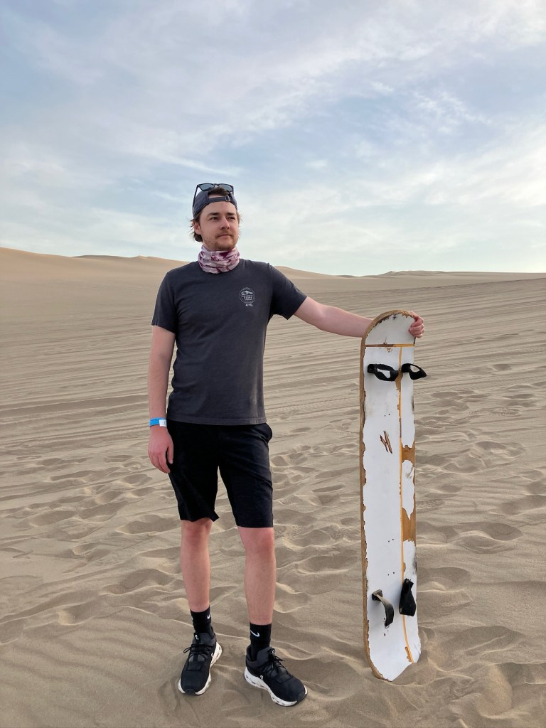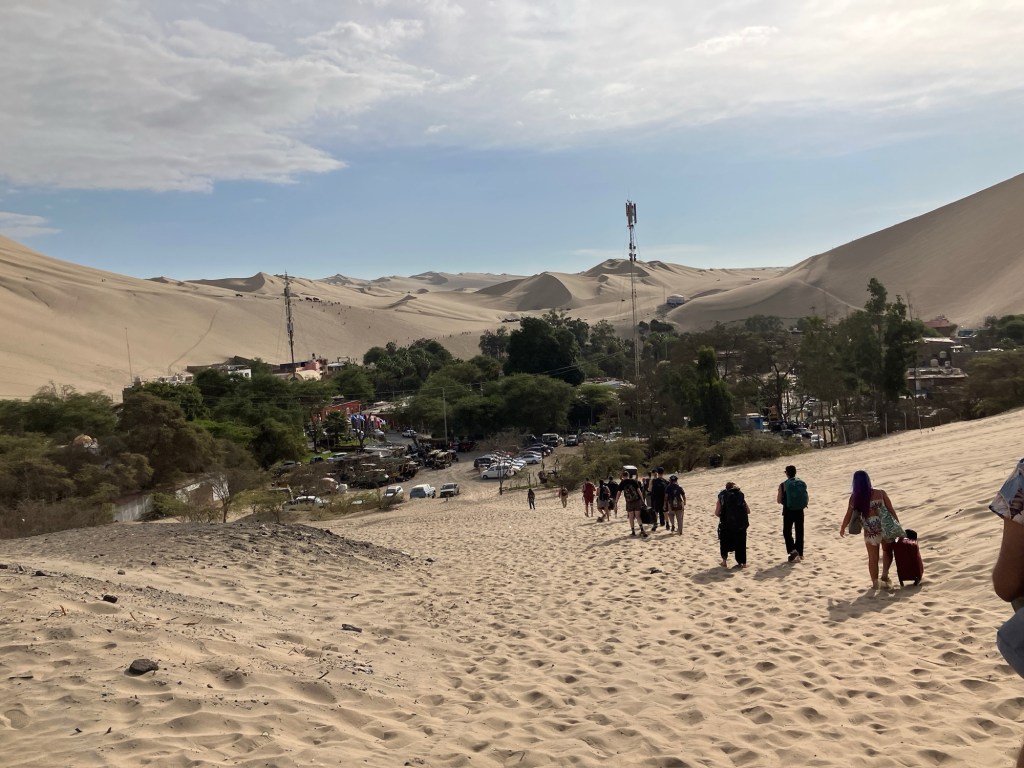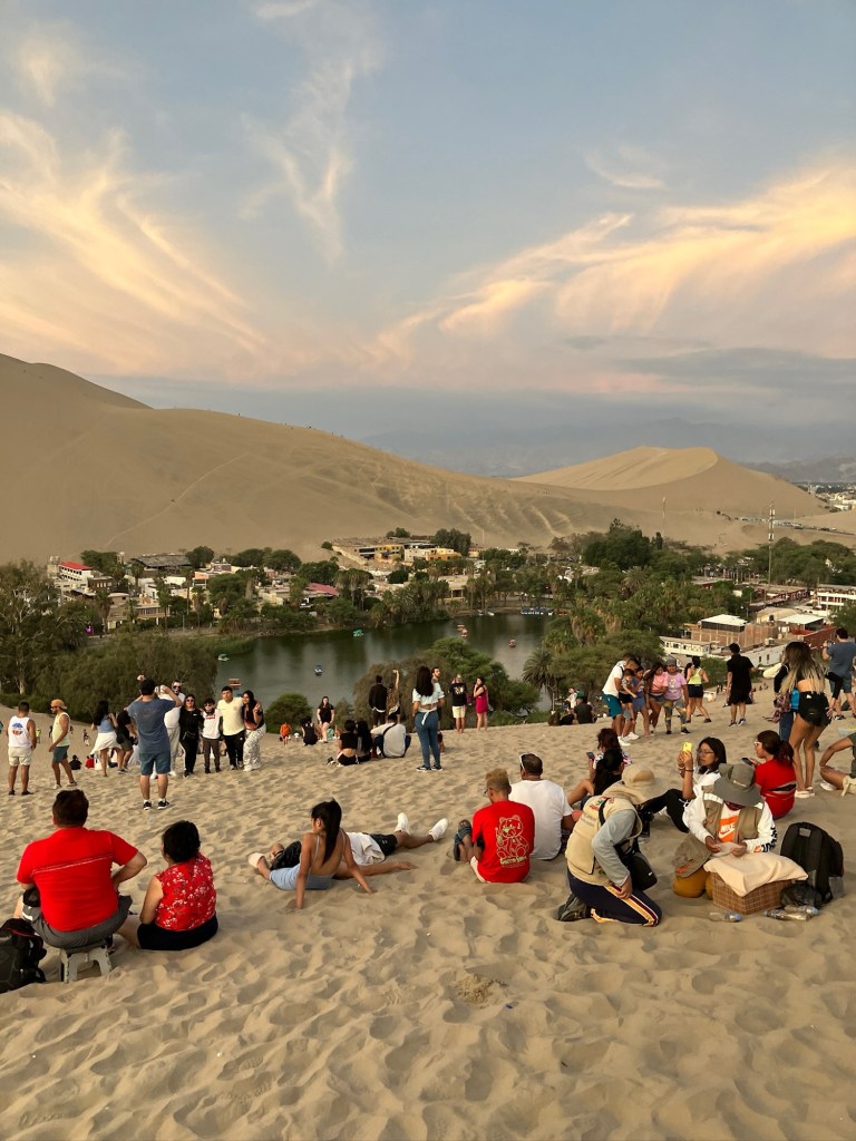 Our next and final stop of the day was not too far. The Huacachina Oasis is a famous attraction in Peru, and the amount of Peruvian and non-Peruvian tourists reflected that. The Oasis is just that: a little pond in the middle of the desert. But that is underselling it. Huge sand dunes surround it on all sides so when you are standing at the water, you feel like a bug trapped in a sandbox. Hotels and shops had been built around it to form a little tourist town. But we hadn’t arrived there yet, let me back up.