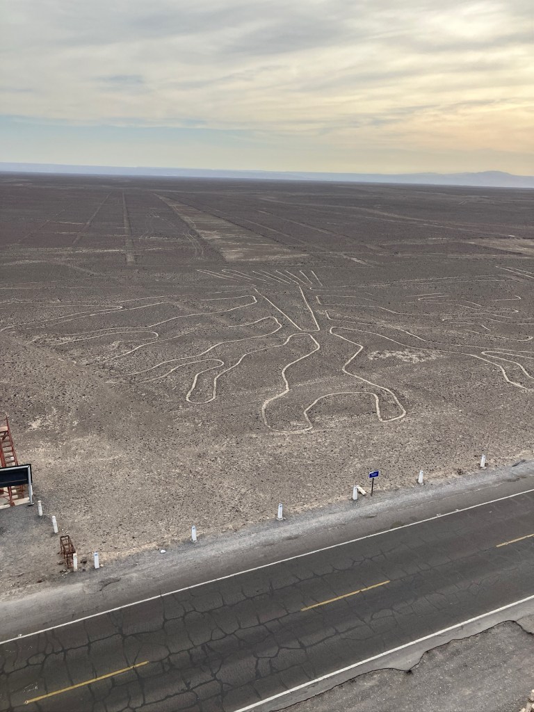 For miles and miles the landscape looked like the surface of Mars. It never rained. In fact it rained so little, that people two millennia ago were able to create the Nazca Lines by simply digging up the red top soil to reveal white rock underneath, and they still exist today. The Nazca Lines are huge drawings in the ground of plants and animals. What is perhaps most curious about them, outside of no one knowing who or exactly when they were created, it that the shapes can only be observed from high in the air. And where they are drawn, there is not a mountain or a tree for miles. So the creators of them could not behold the Lines themselves.