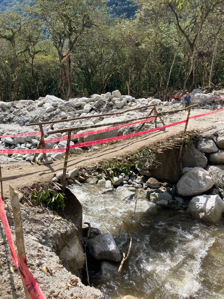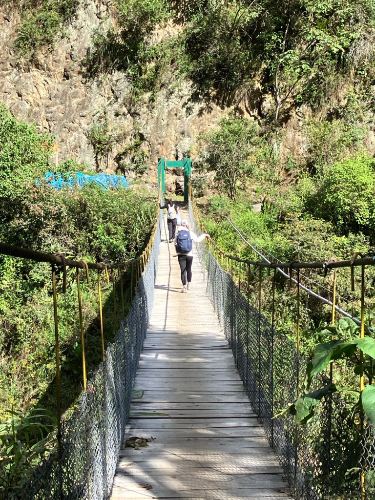 We walked, then we walked some more. We walked through a forest which had been decimated by a massive landslide. We crossed bridges made of steel, bridges made of rope, and bridges made of dried mud and sticks. We passed huts where old women sold pastries and treats. Fredy knew them all by name. We said hello to many dogs and cats along the way. Signs of civilization became more apparent. Then we walked a little more.