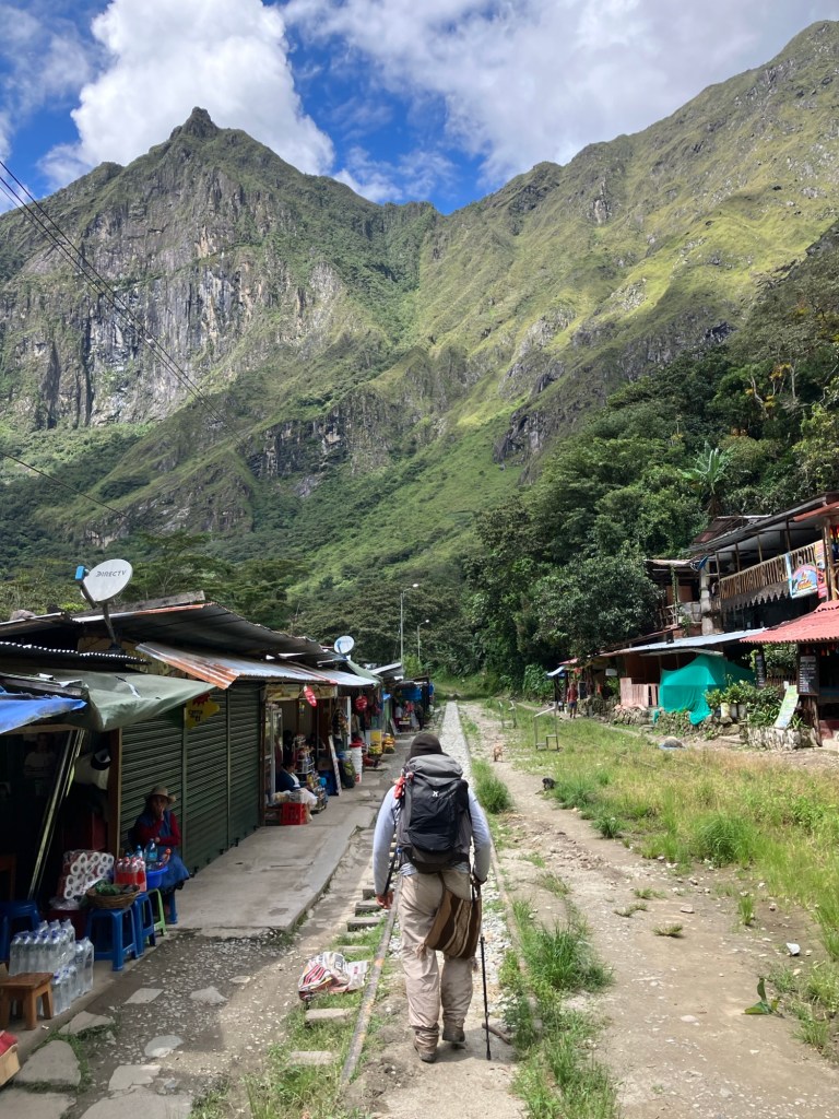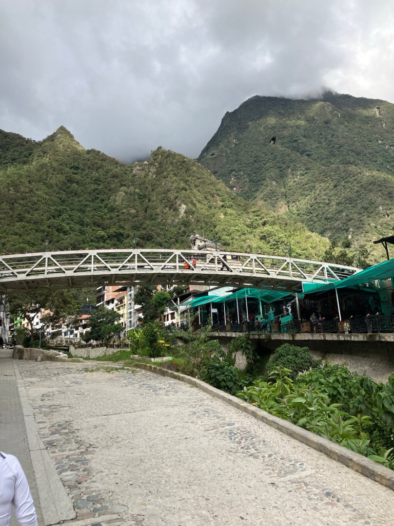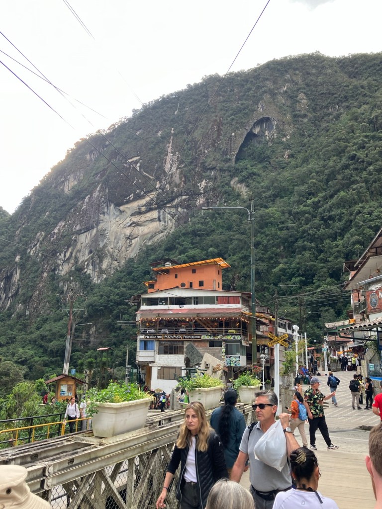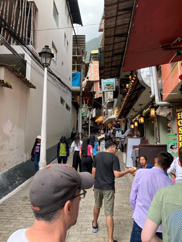 Mercifully the town of Aguas Calientes, our final stop, came into view. Then my relief was squashed at the sight of the hill it sat on top of and the long slope up to it. The home stretch. We walked on paved road now. Cars passed us. Other tourists bustled about taking pictures. But our hotel sat on top of the hill at the edge of town.