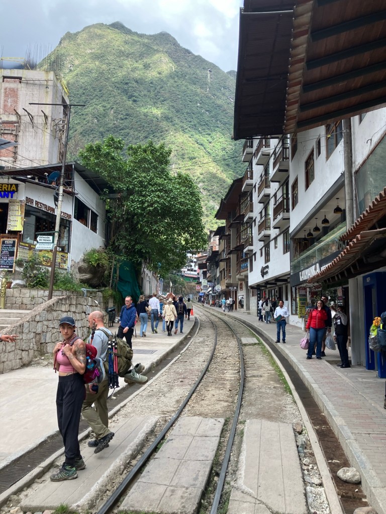 Triumphantly, I arrived in town. I think most of the team beat me there. It was clear that Aguas Calientes was a boom town as a result of Machu Pichu’s popularity, but it didn’t feel overly commercialized. Sure there were hotels and plenty of gift shops, but the town was gorgeous. It sat on a hill slope at the convergence of two rivers. Stylish wood and stone bridges crossed these rivers joining together an abundance of pedestrian walkways. The main passenger train ferrying people from Cusco to Machu Pichu ran straight through the middle of town. Keychains in the gift shops rattled as it rumbled through town, so close to the sidewalk I could reach out and run my fingers along it as it passed. The buildings were colorful and varied. There were a handful of bars and restaurants. And of course, all of this sat under the shadow of Machu Pichu and the surrounding mountains on all sides. It was just fun. It was a perfect final stop.