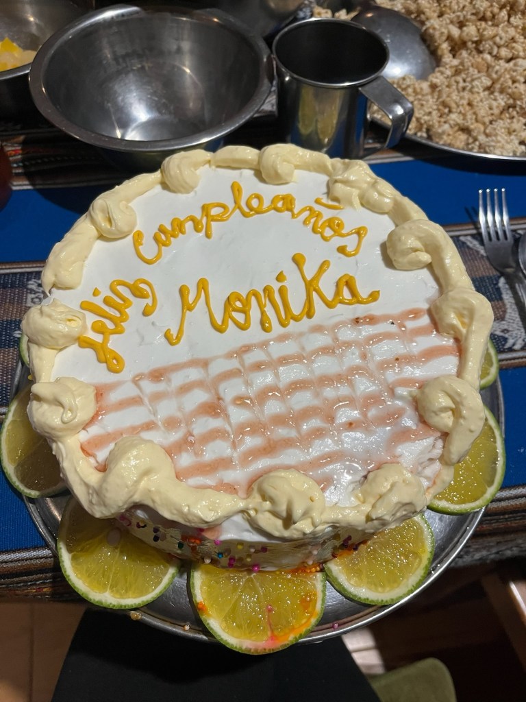 I slept through breakfast. Sleep was more important to me than food at this point. What I missed was the cooks made Monika a birthday cake from scratch with no oven. I have no idea how. Monika’s birthday was the following day, but this was our last meal with the cooks. It was an incredibly kind gesture, one of so many I lost count from the hospitable Peruvians.